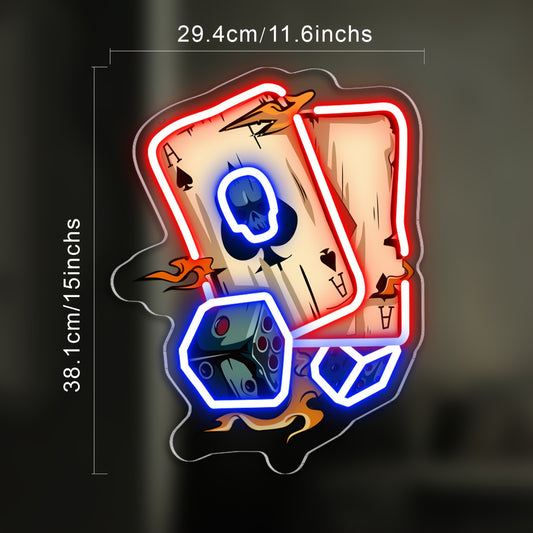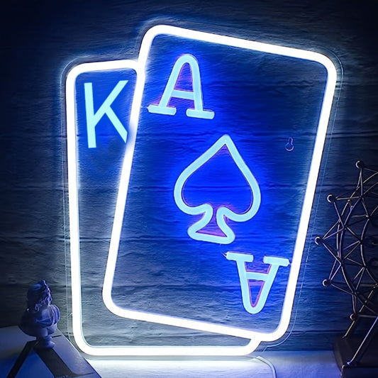 Neon Poker Sign for Wall Decor - LED USB Light for Bedroom, Casino, Bar, Hotel, Game Room