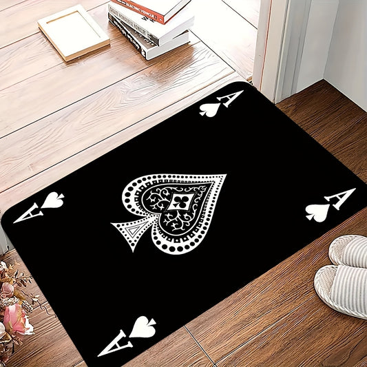 Black Ace Of Spades Poker Pattern Area Rug - Non-Slip, Washable For Indoor/Outdoor Use