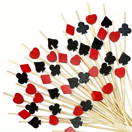 100pcs/Set, Playing Cards Fruit Swabs, Creative Disposable Bamboo Swabs, Cake Fruit Swabs, Las Vegas Cocktail Decoration