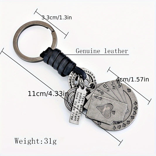 Retro Alloy PU Leather Poker Keychain with black leather grip